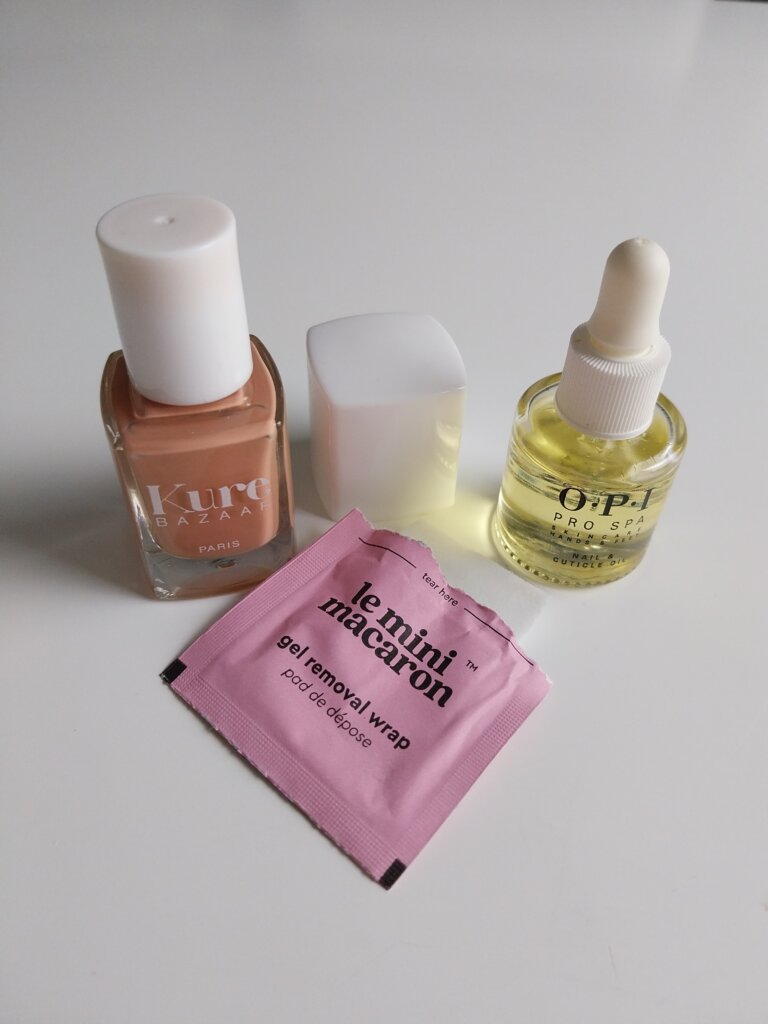 Luonnonkosmetiikan kynsilakkojen osalta kestävämmäksi olen havainnut Kure Bazaarin lakat. Lisäksi Kure Bazaarilta löytyy laajalti värivalikoimaa. Kynsinauhaöljyn osalta aion siirtyä luonnonkosmetiikkaan, mutta käytän ensin vanhan kynsinauhaöljyn pois. Kynsinauhaöljynä minulla on tällä hetkellä käytössä OPI Pro Spa nail & cuticle oil.